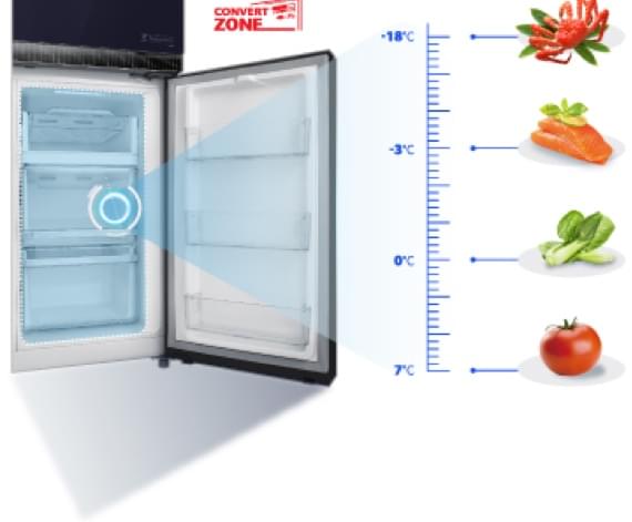 Whether it's hosting unannounced visitors, arriving home from a long trip, or spending your weekend at home, your refrigerator settings can be adapted to your daily needs. Toshiba's Convert Zone technology allows you to alter temperatures from a Deep Freeze mode (-18 C) to a Normal Fridge mode (up to +7C), depending on your needs and the types of food you are storing.